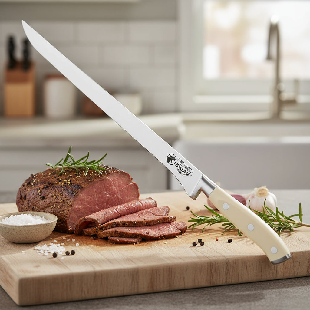 The ivory-colored resin handles are a visual delight and very comfortable.