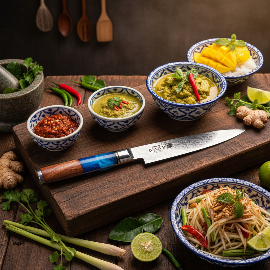 La serie ya'ax incluye 6 cuchillos: Chef 8", Nakiri 7", Santoku 7", Cuchillo para deshuesar 6", Multuiuso 5" y Mondador 3.5"